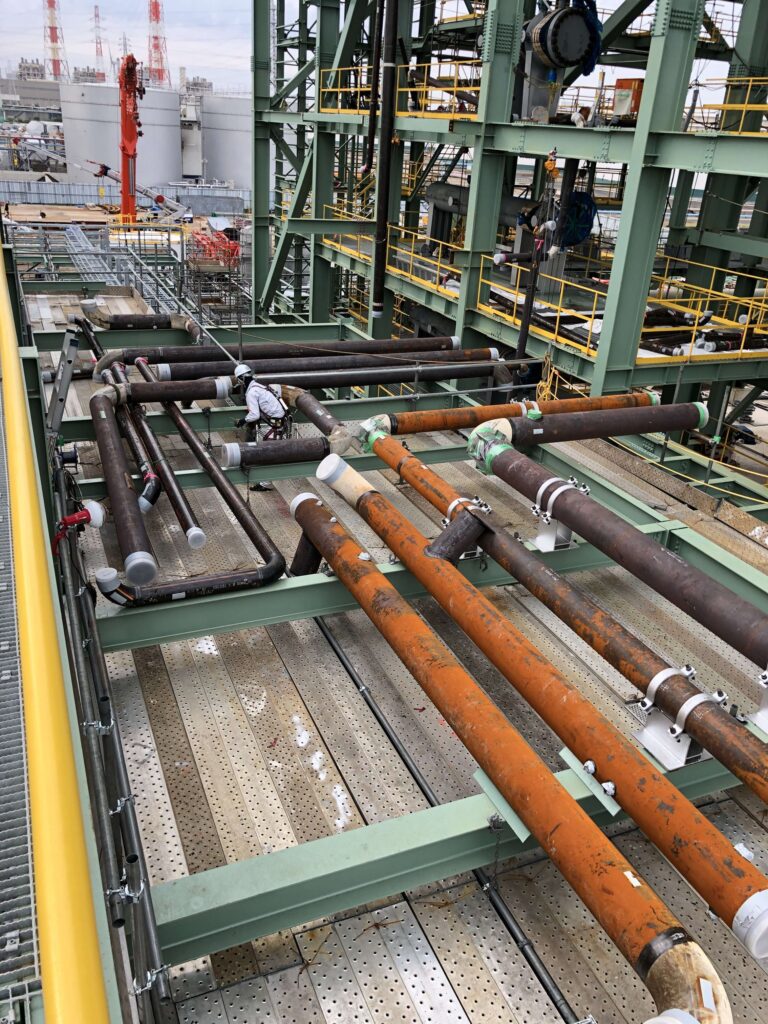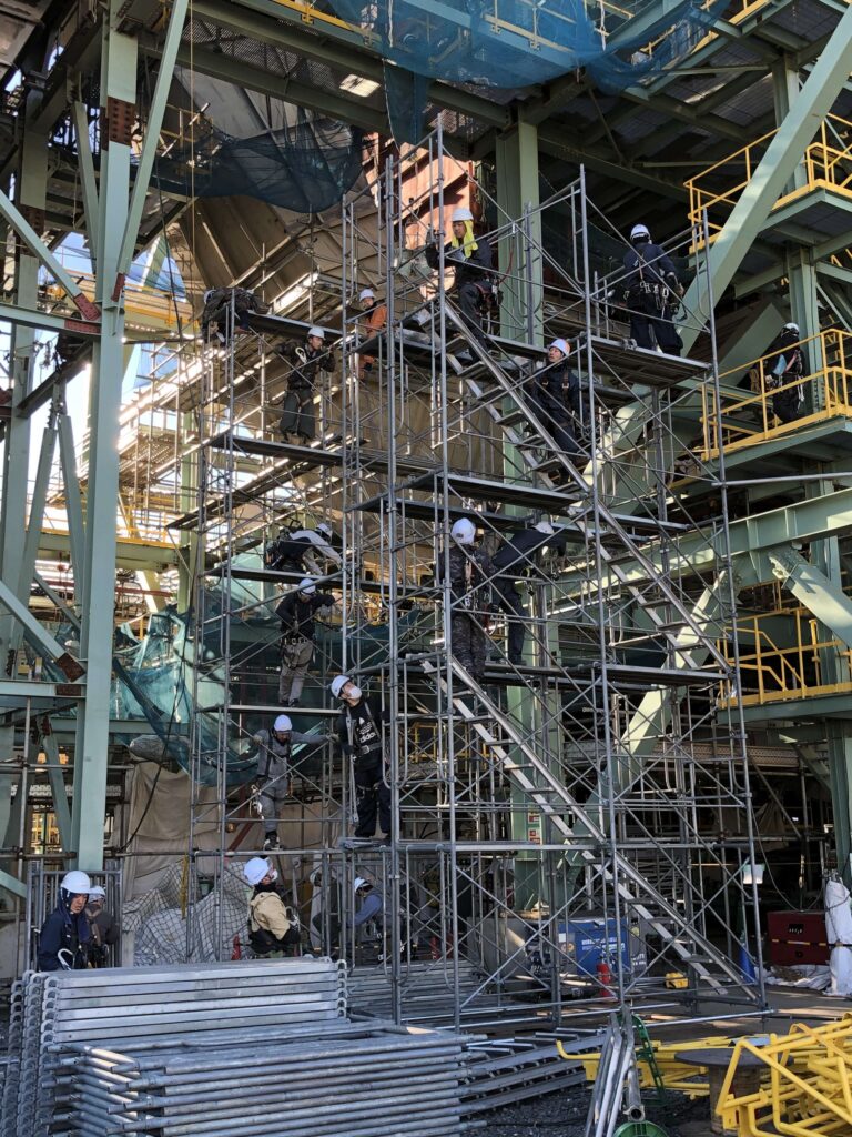 配管の吊り込みから足場設置と継続的に続けてまいりました。