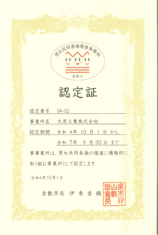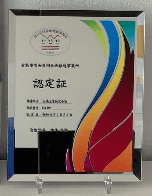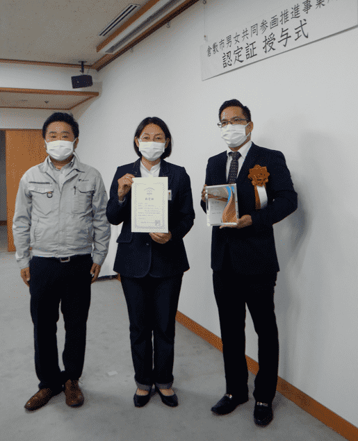 そして、倉敷市男女共同参画推進事業所認定企業として倉敷市から
