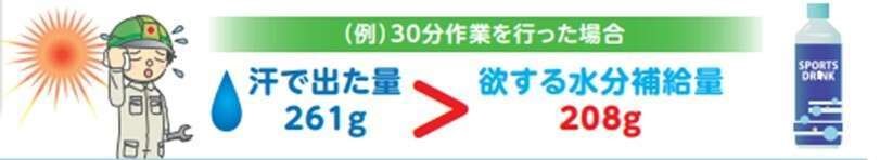 ・発汗 ⇒ 発汗量 > 一度に吸収できる量(ヤクルト2本分(130mL))